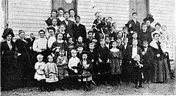 In 1870, St. Martin's Catholic Church, an 18x24 log structure, was built in Chouteau Springs on 1.5 acres of land donated by Daniel Martin, called "Martinsville."[9] A larger frame structure church was built on the same grounds in 1877 and in 1908 a solid red brick church was built on 2.25 acres donated by Anton Joseph Wesselman. The third church was about 1/4 mile north of the Chouteau Springs KATY railroad station. In 1920 St. Martin's Parochial School was built next to the brick church.[10] One hundred years after the first church was built in 1870, the Diocese closed down St. Martin's Church and School in 1970. St. Martin's Cemetery (Chouteau Springs "Martinsville") is located on the eastern rim of Chouteau Springs 38°55′01″N 92°52′40″W / 38.9169006°N 92.8778000°W. Cemetery records are regularly surveyed.[11]