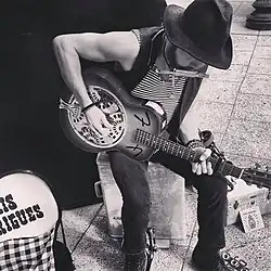 ![]() Chris Rodrigues busking in Asheville NC 2013 | |
