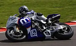 Chris Walker (born 25 March 1972[1] in Nottingham) is a British motorcycle road racer and former scrambler with the nickname The Stalker.[2] He is a four-time runner-up in the British Superbike Championship,[3] and a former race winner in the Superbike World Championship. For the 2015 season Walker signed for Tommy Hill's Be Wiser Kawasaki Team aboard a Kawasaki ZX-10R in the British Superbike Championship,[4] following his 2014 season with Lloyds British GBmoto squad.[5] Team manager Hill left in August, 2015,[6] and the team folded in September, leaving Walker without a ride for the final two race meetings of the season.[7]