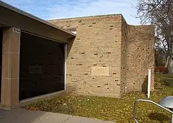 The International Style worship building was designed by the firm Saarinen and Saarinen, a father and son partnership of Eliel Saarinen (1873–1950) and Eero Saarinen (1910–1961), the project was Eliel Saarinen's last completed building. The sculptured stone panels were designed by William M. McVey (1922–1976). It was dedicated in 1949, and was acknowledged as an architectural masterpiece from the day it opened. As an early, outstanding example of modern religious architecture in the United States, it was widely published in the architectural, popular, and religious press, and provided inspiration for countless modern churches that were to be built in the 1950s and 1960s.[4] Noted conductor Osmo Vänskä said of the church that "It's a good place to play. The acoustics are good for music—for chamber music—and it's a good place for the audience to listen. It's a place not only for the congregation but also a venue for concerts."[5]