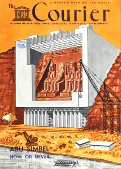 Mustafa Amer, head of the Antiquities Service, set up the Centre des études et de documentation d’archéologie égyptienne (CEDAE), and in 1954, reportedly Amer sent a telegram and letter to UNESCO in Paris suggesting as a possible archive specialist for the new Centre, one of which was Desroches Noblecourt, then curator of Egyptian antiquities at the Louvre.[9] Desroches Noblecourt was chosen as the UNESCO's advisor to the CEDAE and she arrived in Cairo in November 1954 .[9] Amer stated that he never suggested Desroches Noblecourt but they worked well together.[9] They began with the recording of the Tombs of the Nobles at Luxor, but in early 1955, Desroches Noblecourt reported back to UNESCO that the potential flooding of the monuments of ancient Nubia by the new Aswan High Dam were of immediate importance.[9] In 1959, Desroches Noblecourt encouraged Sarwat Okasha, the Egyptian Minister of Culture to ask UNESCO for its support.[10][11] Later that year both the Sudanese and Egyptian governments requested UNESCO's support and together they launched the twenty-two year campaign to save the temples of ancient Nubia.[12]