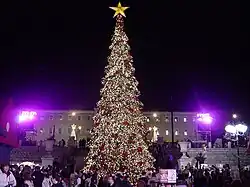 Christmas is a widely celebrated festive holiday in the United States,[29] and Christmas Day is officially recognized as a federal holiday by the U.S. government. In select years, Christmas Eve is declared by the president via executive order to be a federal holiday as well, the latest such directive having been for 24 December 2024.[30] The Christmas and holiday season begins around the end of November with a major shopping kickoff on Black Friday, the day after the U.S. holiday of Thanksgiving, though the period during which Christmas decorations are present and thematically appropriate music is playing in stores sometimes extends into the period between Halloween and Thanksgiving. Many schools and businesses are closed during the period between Christmas and the New Year's Day holiday, which is a time commonly used to spend time with family and close friends. Most decorations are taken down by New Years or Epiphany. Other observances considered part of the season (and potentially included in non-denominational holiday greetings like "Happy Holidays") include Hanukkah, Yule, Epiphany, Three Kings Day, and other celebrations. 26 December, popularly referred to as Boxing Day or Saint Stephen's Day elsewhere in the Western world, is only known widely as the "Day after Christmas" in the U.S.,[31] and is observed in a number of states under that name, but is not a federal holiday. Christmas is known as Quviasukvik in the state of Alaska and the Inuit, the Yupik, the Aleut and the Iñupiat celebrate it as their New Year.