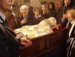 In his final days, the Archbishop refused to be hospitalised, preferring to remain at his home in Psychiko,[41] where he died on 28 January 2008, one week and four days after his 69th birthday.[42] After his death the Greek government announced a four-day national wake during which his body lay in state at the chapel of the Cathedral of the Annunciation.[43][44]