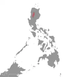 The species occurs in the Central Cordillera in northern Luzon at elevations of 1,800 - 2,500 m, where it is known only from four disparate localities. It frequents dense vegetation in montane and mossy forests and does not make use of severely disturbed habitat, although it has been reported from mosaic vegetation created by landslides.[1][2]