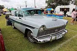 A revised Royal, the AP2 was introduced in late 1958.[5] This series featured a new grille and unusual rear styling with additional "saddle fins" grafted on to the existing tailfins.[5] The AP2 was available as a Royal four-door sedan, a Plainsman four-door station wagon, and the new Wayfarer two-door coupé utility.[2] The unrelated Dodge Wayfarer lent its name to this version. The Plainsman station wagon was dropped from the range during the AP2 series.[2] The choice of six-cylinder and V8 engines continued, with the V8 identified by a V-shaped emblem in the grille and a small V8 badge on the rear quarter.