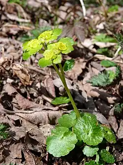 Chrysosplenium alternifolium is a species of flowering plant in the saxifrage family known as the alternate-leaved golden-saxifrage.[1] It is a mat-forming perennial of wet places that grows between 5 and 15 cm (2 and 6 in) tall. It blooms from March onward.