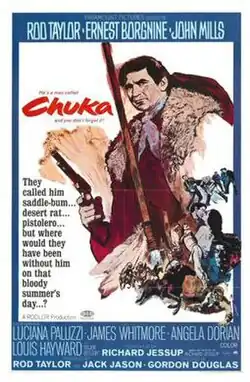 Chuka is a 1967 American Western film starring Rod Taylor who also produced it and worked on the screenplay.[3] The film was directed by Gordon Douglas and is based on 1961 novel by Richard Jessup,[4] who also wrote the screenplay.[5]