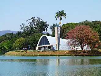 The Church of Saint Francis of Assisi (Igreja de Sao Francisco de Assis, commonly known as the Igreja da Pampulha) is a chapel in Pampulha region of Belo Horizonte, in the state of Minas Gerais, southeastern Brazil. It was designed by the Brazilian architect Oscar Niemeyer in the organic modern style. It is the first listed modern architectural monument in Brazil and consists of four undulating concrete parabolas with outdoor mosaics. The interior hosts a mural by Candido Portinari, and the exterior features a landscape designed by Roberto Burle Marx.[1]