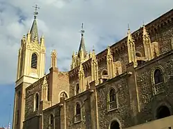 The first major restoration was carried out during the reign of Isabel II of Spain, between 1848 and 1859, by the architect Narciso Pascual Colomer,[1] in the Isabelline Gothic style, who added some new elements, such as towers. The second restoration, 1879 to 1883, by Enrique María Repullés, transformed the building into its current role as a parish church.[1] Only a few external features remain of its original structure. The exterior remodeling of the nineteenth century in a neo-Gothic style by Pontian Ponzano remains controversial.