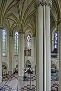 The church was built by the Latin Archbishop of Lviv, Józef Bilczewski in the years 1903–1911 as a parish church for the city's dynamically developing western suburb. It was designed by Polish architect Teodor Talowski,[1] in the neo-Gothic style, similar to that of the Votive Church in Vienna. St. Elisabeth's, placed on a hill which is the watershed of the Baltic and Black Sea, with its facade flanked by two tall towers and an 85 m belfry on the north side with imposing spires was envisioned as Lviv's first landmark to greet visitors arriving in the city by train.