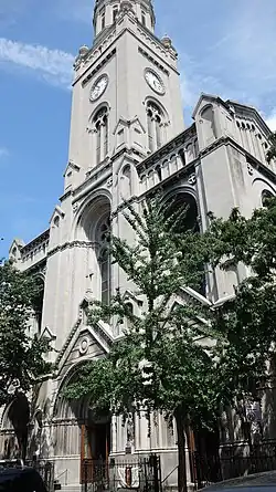 The Church of the Most Holy Redeemer, also known as Santísimo Redentor, is a Catholic parish church under the authority of the Archdiocese of New York, located at 161–165 East 3rd Street between Avenues A and B in the East Village neighborhood of Manhattan, New York City.[1] The parish was founded in 1844 by the Redemptorist Fathers, and the church, which looks more like a cathedral than a parish church, was built in 1851–1852, designed by an architect named Walsh.[2][3]