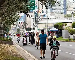 Ciclovía, ciclovia or cyclovia (/ˌsiːkloʊˈviːə/; Spanish: [sikloˈβi.a]) is term which translates from Spanish into English as "bike path" and now used worldwide to refer either to a permanently designated bicycle route or a temporary event, the closing of the street to automobiles for use by others.