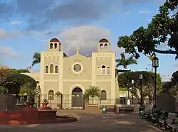 Located across from the central plaza is the Parroquia Nuestra Señora del Carmen (English: Our Lady of Mount Carmel Parish), a Roman Catholic church. The first church made of wood was built in 1815. In 1867, a second church was built but was destroyed by an earthquake soon after. Pedro Cobreros designed the next church which was built in 1895. The current structure with a new facade was completed in 1952 and the lateral naves were added at that time.[17]