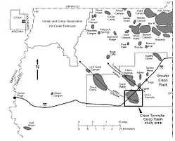 Cisco Oil Field is an oil field located in Grand County, Utah. The field was discovered in 1924 in the now abandoned town of Cisco, Utah. It is one of the oldest oil fields in the state of Utah. The field has been developed intermittently since then with the discovery of several small accumulations of oil. The field lies along a larger feature known as the Uncompahgre Uplift which is a boundary between Paradox Basin, the Uintah Basin and the Piceance Basin.