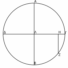 In geometry, the cissoid of Diocles (from Ancient Greek κισσοειδής (kissoeidēs) 'ivy-shaped'; named for Diocles) is a cubic plane curve notable for the property that it can be used to construct two mean proportionals to a given ratio. In particular, it can be used to double a cube. It can be defined as the cissoid of a circle and a line tangent to it with respect to the point on the circle opposite to the point of tangency. In fact, the curve family of cissoids is named for this example and some authors refer to it simply as the cissoid. It has a single cusp at the pole, and is symmetric about the diameter of the circle which is the line of tangency of the cusp. The line is an asymptote. It is a member of the conchoid of de Sluze family of curves and in form it resembles a tractrix.