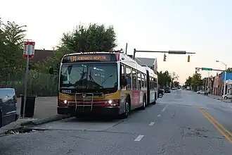 Routes 28 and 37 had served the Liberty Heights corridor since 1947. The main bus line serving Liberty Heights Avenue in both directions was Route 28. Route 28 had operated since 1947 between the Liberty Heights Avenue corridor and Cherry Hill with other destinations. All buses that had operated from Cherry Hill and other locations in South Baltimore to Liberty Heights had been given the no. 28 designation. All buses that originated from Liberty Heights with a destination other than Cherry Hill were identified as no. 28. But all buses that originated in the Liberty Heights area and had a final destination of Cherry Hill were designated no. 37. This was done to alert white residents of the communities in the Liberty Heights area that the bus's final destination was Cherry Hill, then a low class black community.[3][4] This practice was discontinued in 1974 when the no. 37 designation was dropped, and all buses along this route were given the no. 28 designation.[5]