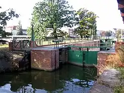 | City Lock[9] | South Oder – bypass canal | Chamber lock | 1794 (rebuilt 1879, 2000) | Dimensions: 42.8 × 5.3 m (140.4 × 17.4 ft); Gates: Mitre gates |