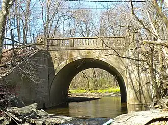 City Line Avenue Bridge is a historic concrete barrel arch bridge spanning the East Branch of Indian Creek and located in the Overbrook Farms neighborhood of Philadelphia, Pennsylvania. It was built in 1913, and is a single-span bridge. The barrel arch measures 20-foot-wide (6.1 m).[2]