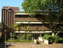 The name "Rockdale" for the West Botany area was first suggested in 1878, and that name gained more credence when the local railway station on the new Illawarra rail line, opened on 15 October 1884, was also given the name Rockdale.[18][19] However, by the time the neighbouring Boroughs of Botany and North Botany (Mascot from 1911) were proclaimed on 29 March 1888, it was clear that a name change was desirable. On 17 May 1888 the Parliament of New South Wales passed the Rockdale Municipality Naming Act (No.33, 1888), and West Botany became the "Municipal District of Rockdale".[20] On 31 December 1900, a fourth ward was added, Hopetoun Ward, named after the soon-to-be first Governor-General of Australia, bringing the number of aldermen to twelve.[21] The 1887 Town Hall was replaced by the current Rockdale Town Hall in 1940, and was designed by Rockdale architect Douglas Gardiner.[22]