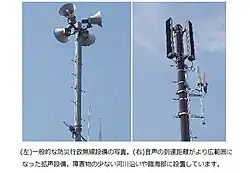 Japan utilizes a system of mainly electronic Bosai Musen electronic sirens to warn of impending missile strikes or natural disasters such as Tsunamis. The system was installed by J-Alert in 2007[23] as one of their many other methods of warning the public of incoming dangers.[24]