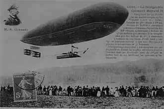 The Clément-Bayard No.2 was a French military airship of 1910, developed by automobile manufacturer Clément-Bayard. Unlike their previous design, this aircraft was designed and built entirely by the firm itself. On 7 September 1910, the airship was used to make the first aerial wireless communications, sending and receiving messages to the Eiffel Tower with a 65 kg (143 lb) transmitter carried aboard.
