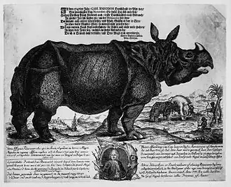 - ^ Rookmaaker, L. C. (1973). "Captive rhinoceroses in Europe from 1500 until 1810" (PDF). Bijdragen tot de Dierkunde. 43 (1): 39–63. doi:10.1163/26660644-04301002.