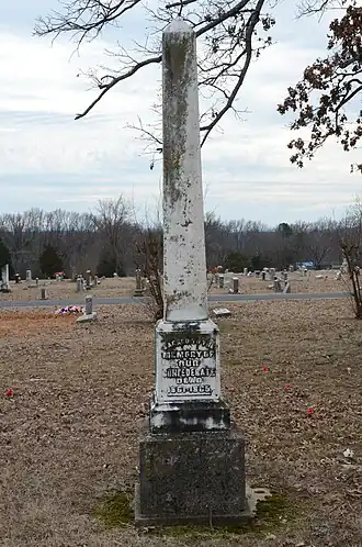 The Clarksville Confederate Monument is located in the south-central section of Oakland Cemetery in Clarksville, Arkansas. It is a white marble obelisk, 10 feet (3.0 m) in height, which is 21.5 inches (55 cm) square at its base. It is mounted on a limestone pedestal 2 feet (0.61 m) square and 22 inches (56 cm) in height. The lower portion of the obelisk is carved with an inscription commemorating the Confederate war dead, and its spire is adorned with a floral pattern. It was placed about 1902 by the local chapter of the United Daughters of the Confederacy.[2]