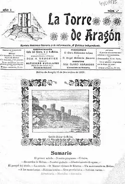 - ^ the periodical ceased to exist in 1907, La Torre de Aragón entry at Hemerotecadigital service