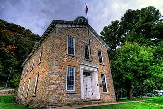 The Clayton School is a historic structure located in Clayton, Iowa, United States. The two-story structure, composed of native limestone, reflects the prosperity of the mid-19th century when it was built.[2] It served as a school building into the late 20th century when the district consolidated with a neighboring school district because of declining enrollment. The building went on to serve as a city hall and community center. Completed in 1860, the rectangular building features bracketed eaves, and a gabled roof that is capped with dormers and an octagon-shaped cupola. It was listed on the National Register of Historic Places in 1974.[1]