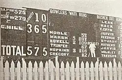 - ^ See scoring (cricket) for an explanation of cricket score formats. This score and all others in the article follow the Australian format of wickets fallen followed by runs made.