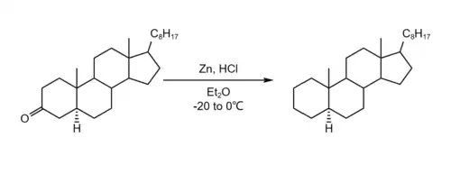 13. ^ a b "Modified Clemmensen Reduction: Cholestane". Organic Syntheses. 53: 86. 1973. doi:10.15227/orgsyn.053.0086.