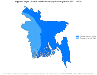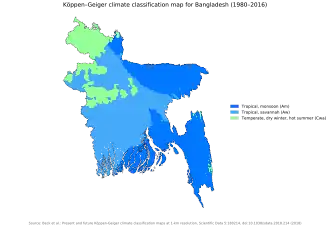 Köppen climate classification map for Bangladesh for 1980–2016