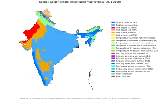 A 2018 study projects droughts to increase in Northern and North-western India in the near future. Around the end of the century, most parts of India will likely face more and more severe droughts.[35]