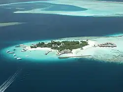The Maldives contains 3% of the world's coral reefs,[10] which are impacted by climate change.[11] The 2016 global coral bleaching event greatly impacted coral reefs across the Maldives, with such events expected to become more frequent and severe due to climate change.[10][12]