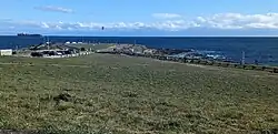 Since the 1970s, an underground sewage pumping centre has existed at Clover Point.[9] In 2016, heavy rainfall caused the station's equipment to fail and release accidental discharge.[10] That same year, Clover Point was rejected as a location for an additional plant.[11] Before 2020, the station only screened sewage before dumping the untreated wastewater directly into the Strait of Juan de Fuca.[12] Mr. Floatie, a 2.1 metres (7 ft) environmental awareness mascot depicting fecal matter, was retired once sewage treatment was implemented.[13] A regional wastewater treatment plant opened at McLoughlin Point in December 2020 as part of a federal mandate;[14] the dispersal of untreated sewage had soured relations between British Columbia and neighboring Washington in the United States.[15]
