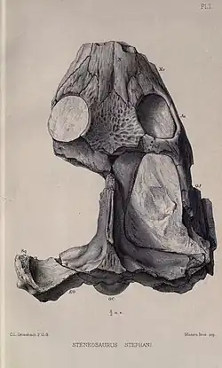 - ^ Hulke, JW, "Gharial skull from the Cornbrash of Closworth." Proceedings of the Dorset Natural History and Antiquarian Field Club, 1877, p. 29