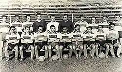 While the club was born as one of the many sport branches of the Universidad Católica de Chile, officially founded in 1937, it began, strictly speaking, around 1910, when students of the university would reunite to play football matches, frequently facing historical rival Universidad de Chile.[6] In time, the idea of creating a professional club emerged, and on 21 April 1937,[7] the club officially and legally began. It made its professional debut, in the second division, against the Universidad de Chile. Universidad Católica won its first League title in the 1949 season.[8]