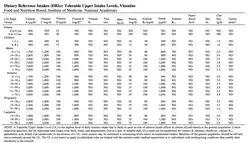 - ^ Dietary Reference Intakes for Calcium, Phosphorus, Magnesium, Vitamin D, and Fluoride (1997); Dietary Reference Intakes for Thiamin, Riboflavin, Niacin, Vitamin B6, Folate, Vitamin B12, Pantothenic Acid, Biotin, and Choline (1998); Dietary Reference Intakes for Vitamin C, Vitamine E, Selenium, and Carotenoids (2000); Dietary Reference Intakes for Vitamin A, Vitamin K, Arsenic, Boron, Chromium, Copper, Iodine, Iron, Manganese, Molybdenum, Nickel, Silicon, Vanadium, and Zinc (2001); and Dietary Reference Intakes for Calcium and Vitamin D (2011).