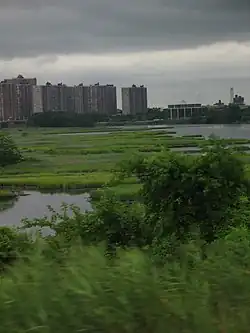 ![]() Co-op City, as seen from the east, sits along the Hutchinson River. | |