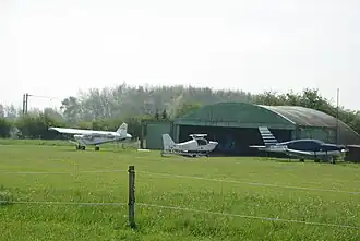 The airfield is operated from an on-site farmhouse and prior permission is required for landing. Its single strip grass runway is 660 m long and not entirely flat, with a dip in the middle and a hump at the eastern end. The older hangar at Coal Aston is a Blister-type hangar, a type made familiar during the interwar years. It was erected by United Steel Companies Limited (later British Steel) in 1961. The runway was then at its maximum length of around 800 m; it was reduced to 660 m in 2015. A second hangar was erected in the 1980s next to the blister. In 1995, the airstrip achieved permanent permission for use as an airfield; it is now one of the last remaining traditional grass airfields in Derbyshire.