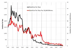 - ^ a b "Coal Fatalities for 1900 Through 2014". US Mine Safety and Health Administration. Archived from the original on April 19, 2016. Retrieved April 17, 2016.