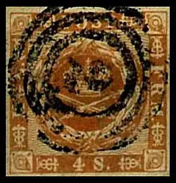 Denmark used a series of numerals (to 286) within three concentric circles. Some duplex obliterators were used. They were all withdrawn in 1873.