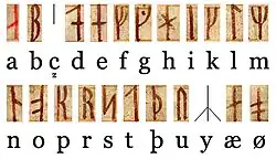 - ^ a b Enoksen, Lars Magnar. (1998). Runor : historia, tydning, tolkning. Historiska Media, Falun. ISBN 91-88930-32-7 p. 175