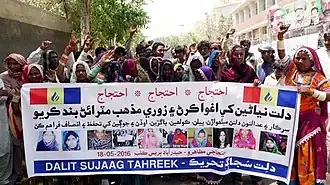 A survey conducted by a Pakistani Hindu organization found that a majority of scheduled caste Pakistani Hindu families do not send their female children to schools due to the fear of forced conversion and kidnapping.[18]