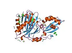 ![]() The three-dimensional structure of BirA, the repressor of the Escherichia coli biotin biosynthetic operon.[1] | |||||||||
