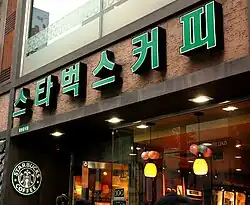However, not all new Starbucks locations were welcomed warmly. In 2001, Starbucks opened a store in Insa-dong overcoming fierce resistance from the neighborhood's shop owners.[4] The locals opposed the plane to open Starbucks because it would taint the Insa-dong's identity as the cradle of all Korean culture.[4] Shop owners also had practical concerns as they believed that Starbucks would lure away customers who visited the traditional teahouses in the area.[4] After numerous negotiations and compromises Starbucks opened their Insa-dong shop.[4] This shop is unique in that it is the only Starbucks with a Korean sign board and its windows have traditional wooden lattice patterns.[4] Inside the shop there are also several markers of traditional culture like wooden masks.[4] However, some Koreans remain cynical of the Insa-dong shop as they view Starbuck's attempts as superficial and merely cosmetic with no real tribute to Korean culture.[4]