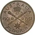 1951 Australian florin commemorating 50 years of the Commonwealth of Australia -