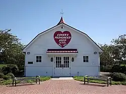 Of the original Coker farm holdings, some 220 acres (89 ha) of the area used by Coker in his breeding experiments was listed as a National Historic Landmark in 1964 for its significance in revolutionizing the field of agriculture in the South. This area was roughly bounded on the south by United States Route 15, the east by Swift Creek Road, the north by the Seaboard Air Line tracks, and the west by a line paralleling west of South Carolina Highway 151, and included farm outbuildings dating to the 1930s in the west side of Highway 151. By the 1990s, the outbuildings had been demolished, and the land on the west side of Highway 151 developed commercially, and the landmark designation was reduced to 145 acres (59 ha), solely to the east of Highway 151.[3] Since then, portions of the land on the east side have also been developed. A further-reduced parcel of farmland remains, on which a barn-shaped museum has been built to interpret the property and its importance.