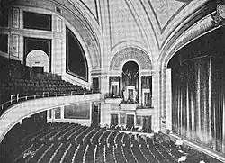 Built in 1920 as B.S. Moss' Coliseum Theatre, the venue was originally a movie palace designed by architect Eugene De Rosa.[4] Marble interiors were done by Voska, Foelsch, & Sidlo Inc, terra cotta by New York Architectural Terra-Cotta Company, ornamental plastering by Architectural Plastering Company, Inc., Peter Clark installed the rigging system, windows supplied by S. H. Pomeroy Company, Inc., Sexauer & Lemke Inc. installed the ornamental iron work, draperies and wall coverings by Louis Kuhn Studio, mirrors & console tables by Nonnenbacher & Co, and the pipe organ was installed by M. P. Moller.[5]