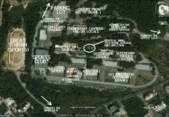 ![]() Bird's-eye view of Champville's campus in Dik El Mehdi. | |